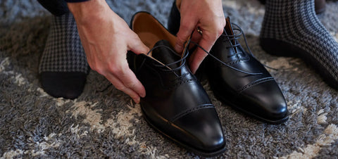 2. Lace the shoes up in a cross pattern, this actually enable you to properly tighten the laces. But please do take care when lacing them up, fingernails can easily scratch the leather.