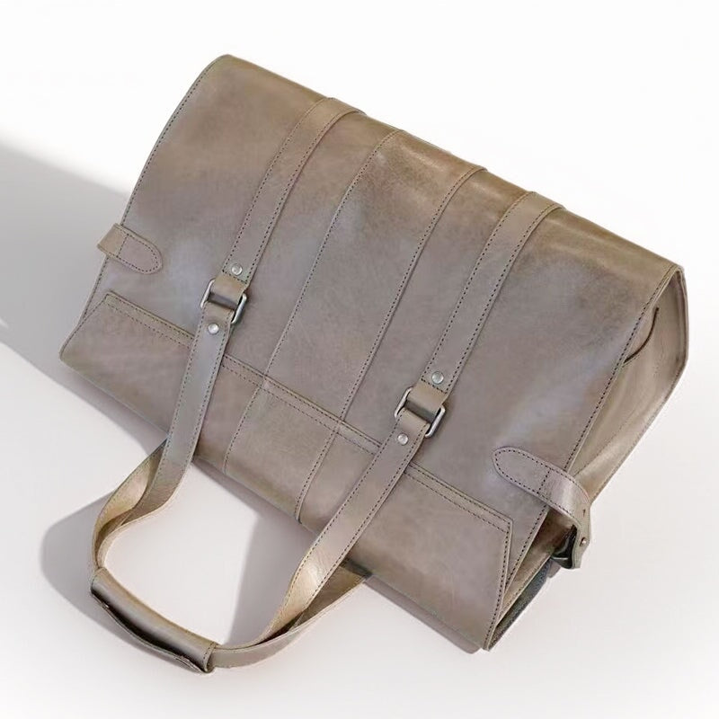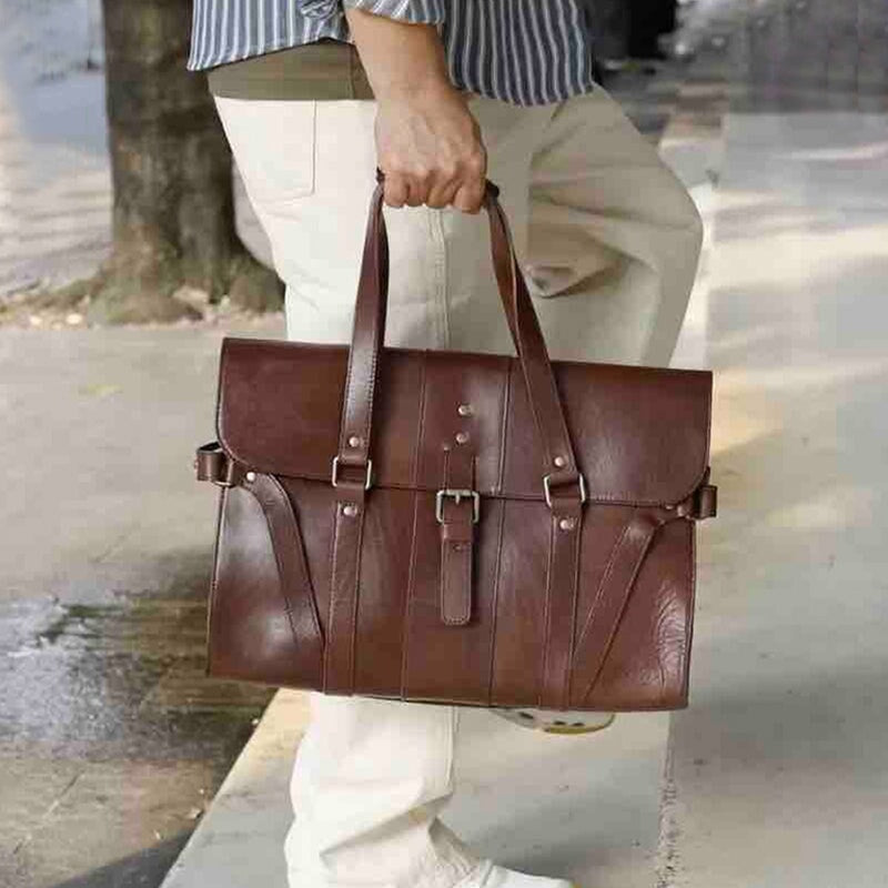 Classic Vegetable-Tanned Leather Briefcase Large Capacity Travel & Handheld Business Bag in 3 Colors