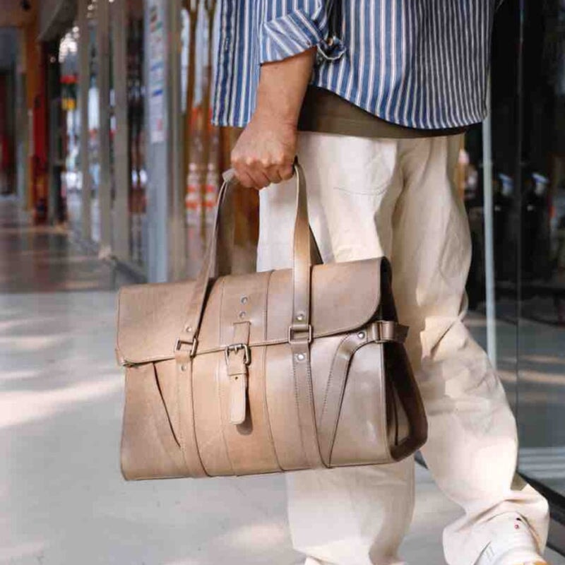 This British-style leather briefcase is crafted from premium vegetable-tanned cowhide, offering a refined vintage look with a rich natural texture that becomes more beautiful over time. The large-capacity interior easily accommodates daily essentials, making it perfect for business trips, commuting, and short travels. Exquisite stitching and precise tailoring are completed by skilled artisans, ensuring superior durability and long-lasting performance.