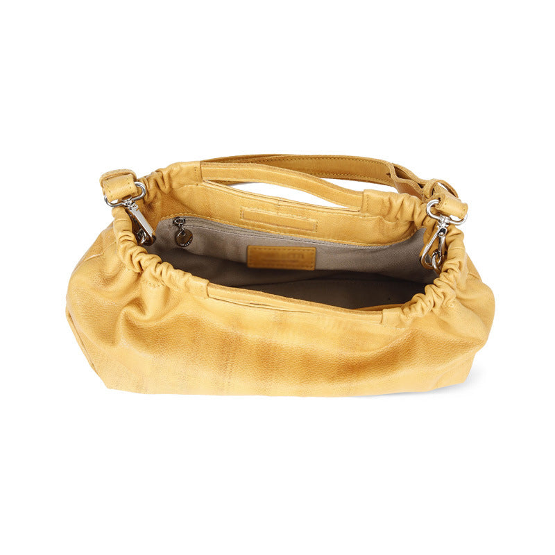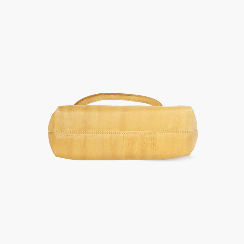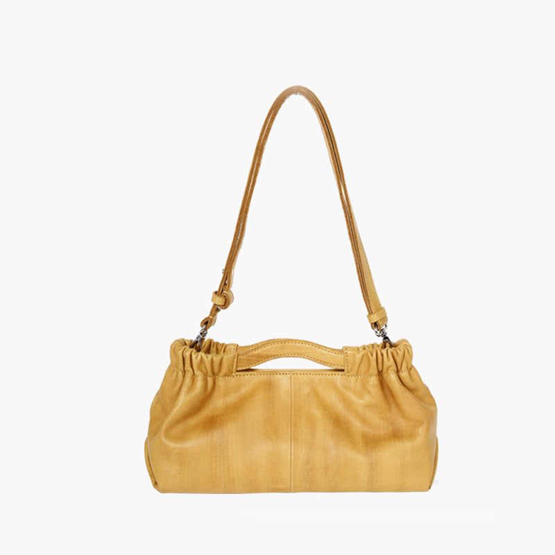 Literary Styles Full-Grain Leather Handbag Pleated Shoulder Bag in Light Yellow/Orange Yellow
