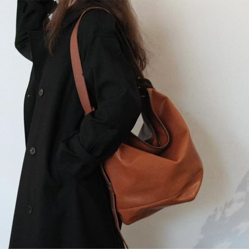 Crafted from vegetable-tanned leather, this bucket bag features a relaxed, slouchy silhouette that captures an effortless, laid-back style. Designed for versatility, it can be carried as a shoulder bag or handbag, making it easy to style for everyday wear. Each bag is finished by skilled artisans, with exquisite stitching and precise tailoring that enhance both durability and refined detail. Stylish yet easygoing, this bucket bag is perfect for daily use—whether for commuting, shopping, or casual outings—offering comfort, functionality, and timeless appeal.