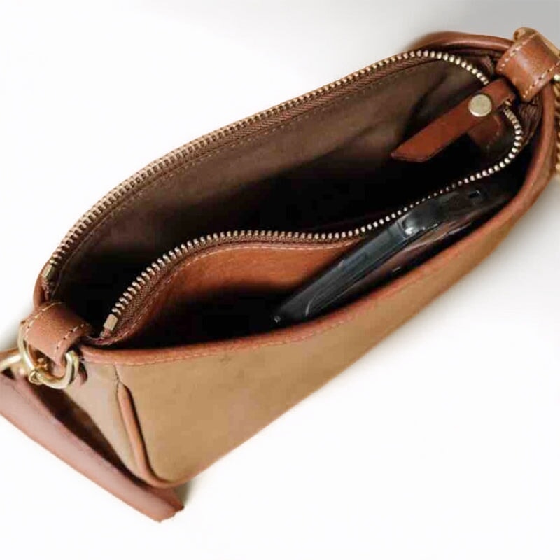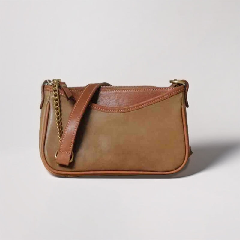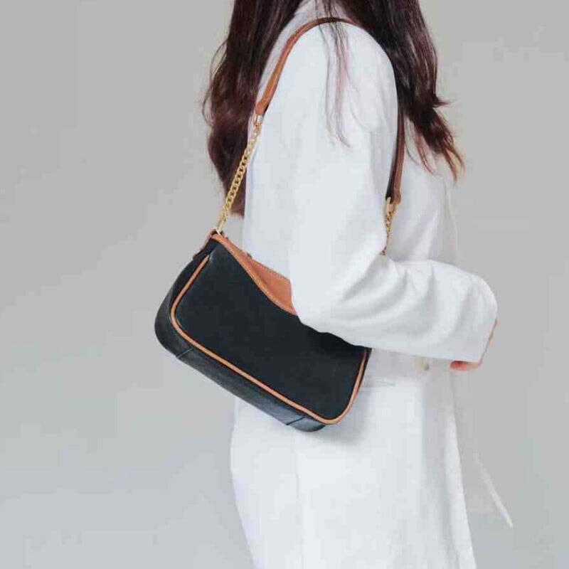 Crafted from vegetable-tanned leather, this shoulder bag is designed in a sleek underarm silhouette with a refined two-tone color palette for a modern yet timeless look. Each bag is meticulously made by skilled artisans, featuring exquisite stitching and precise tailoring that highlight quality craftsmanship. The minimalist design keeps the focus on clean lines and subtle details, making it easy to pair with both casual and polished outfits.