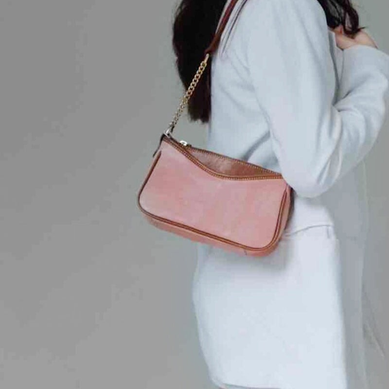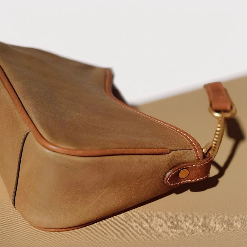 Vegetable-Tanned Leather Shoulder Bag Minimal Two-Tone Underarm Bag in 3 Colors
