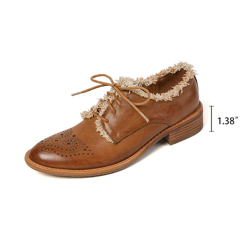 Women Wingtip Shoes Handmade Leather Brogues Oxfords & Tie Low Heel Elegant Brown/Black