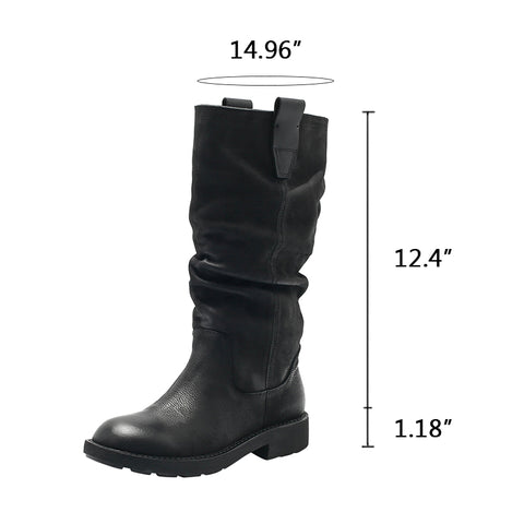 Dwarves Designer Full Grain Leather Knee High Boots Fold Design Riding Boots in Black/Brown/Coffee