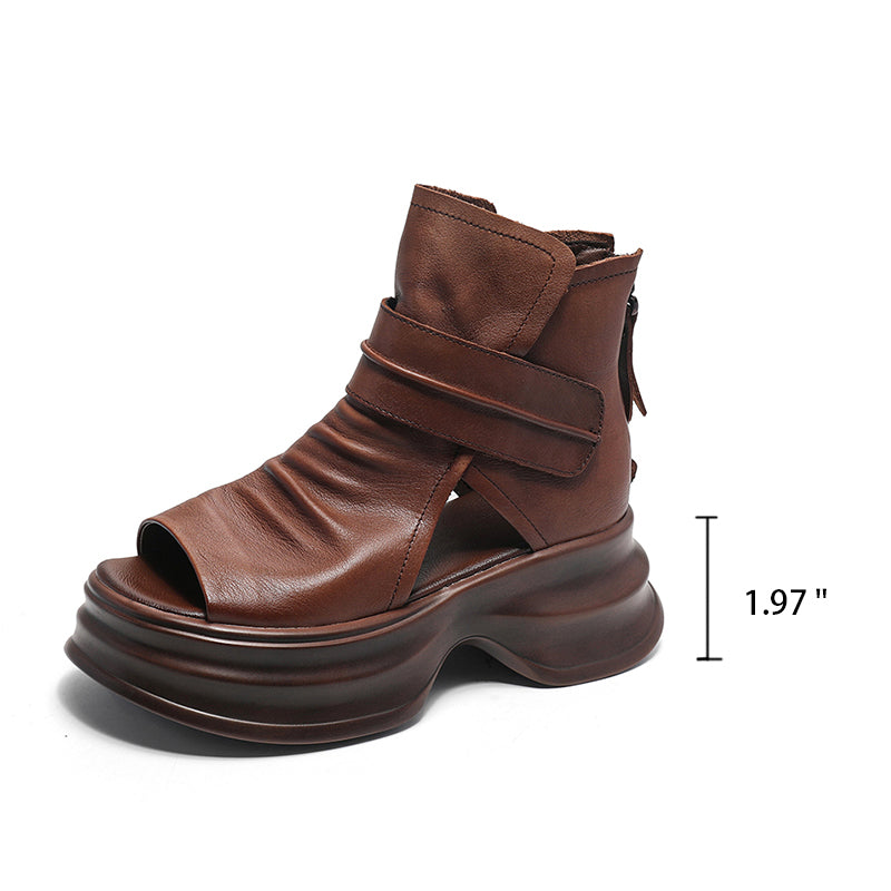 Handmade Leather Light Platform Sandals For Women Mori Girl Style in Black/Brown