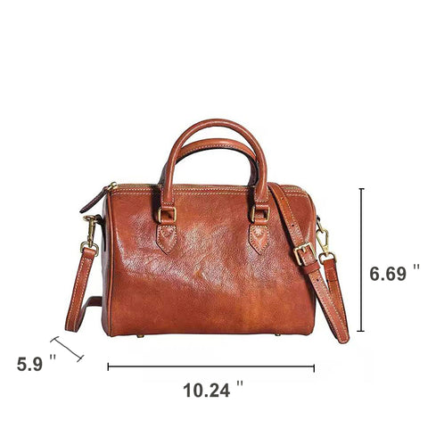 Literary Vintage Boston Cowhide Single Shoulder Women's Crossbody Bag