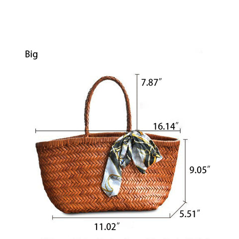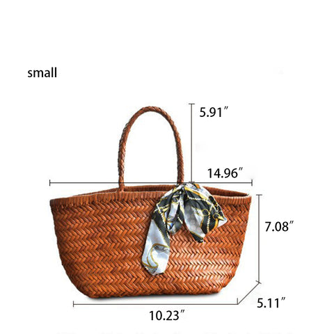 Multicolor Woven Vegetable Basket Bag Head Layer Of Cowhide Hollow Handbag