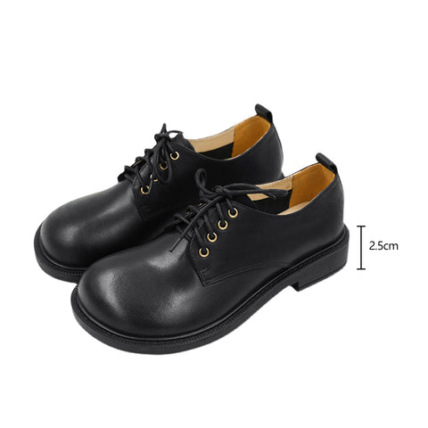 Retro Lace Up Leather Shoes Round Toe Black/Coffee