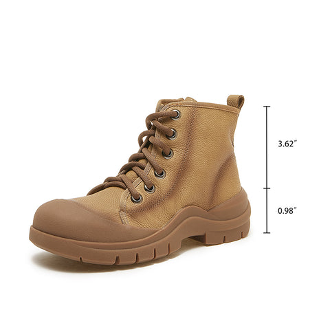 Rubber Toecap Ankle Boots For Women Handmade Lace-Up Leather Designer Ankle Booties in Khaki/Coffee