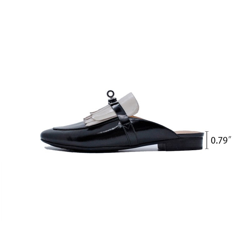 Sheepskin Flat Mules Summer Kiltie Slippers Handmade in White/Black
