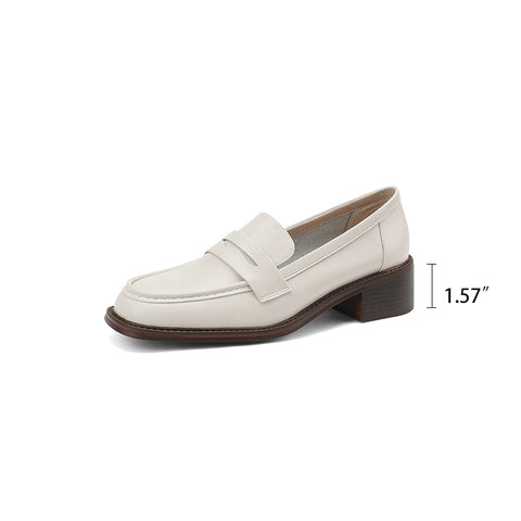 Womens Handmade Cow leather Penny Loafers Retro Block Heel in Green/Black/Beige/Brown