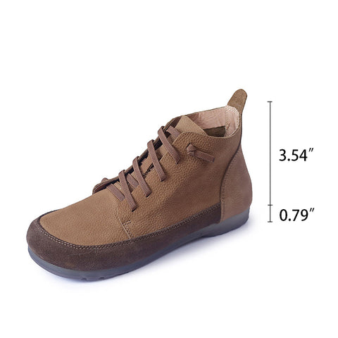 Handmade Flat Barefoot Shoes Soft Leather Ankle Booties Color Blocking in Coffee/Khaki