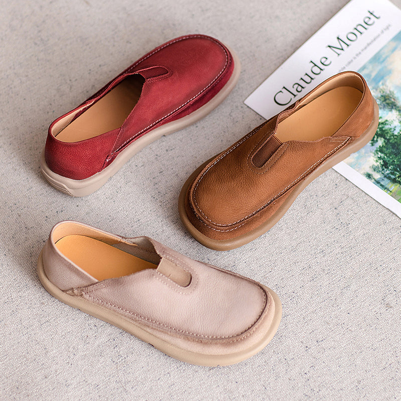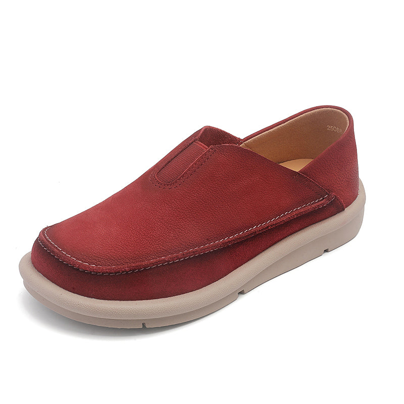 Vintage Barefoot Leather Loafers Women’s Slip-On Casual Flats with Elastic Instep in Earthy Yellow/Red/Beige