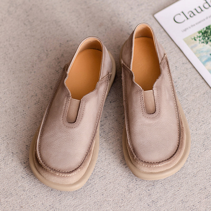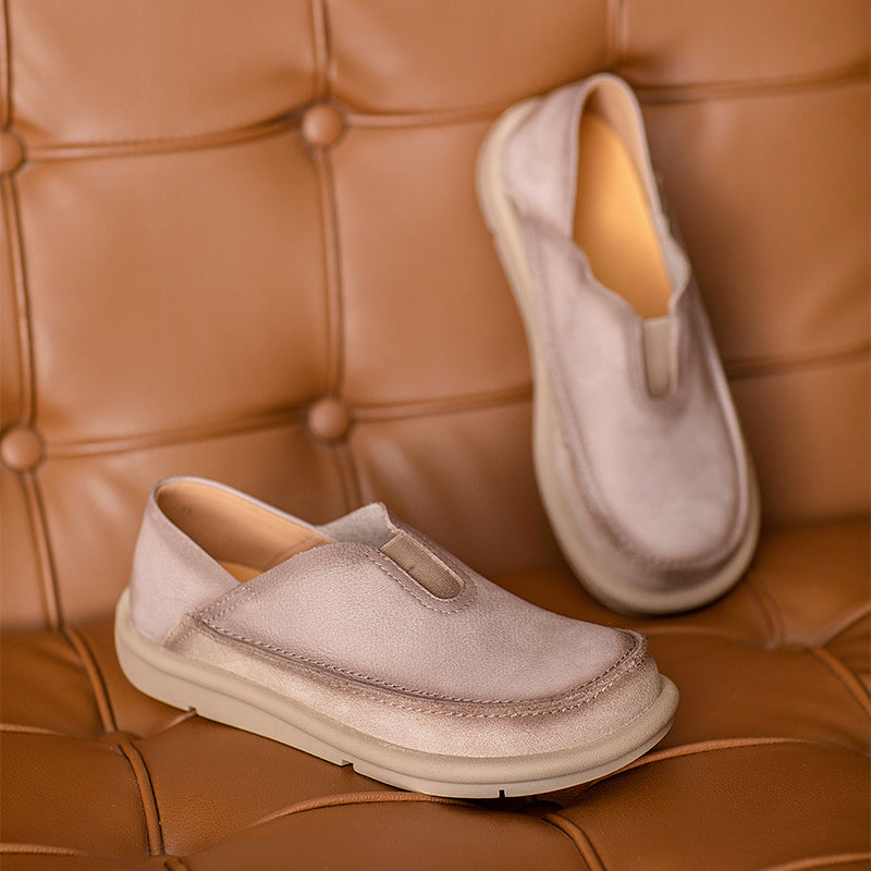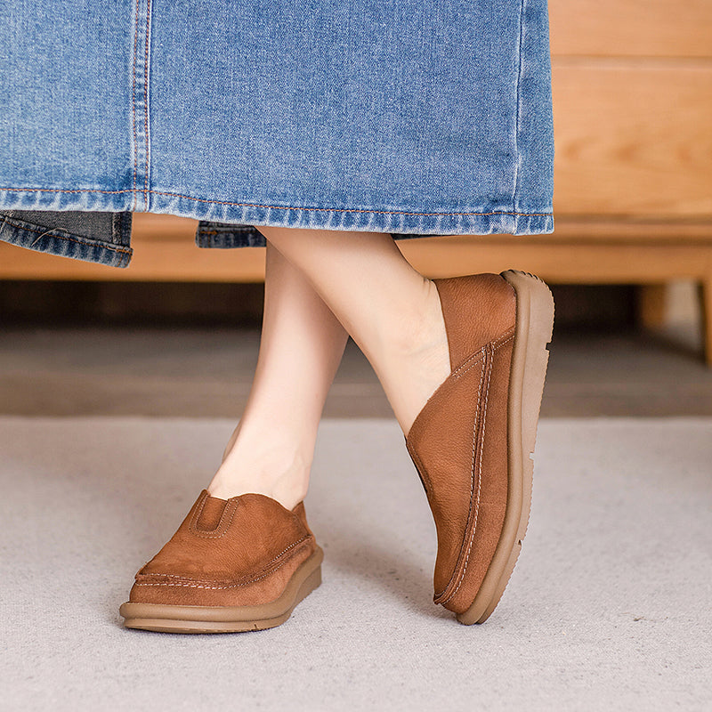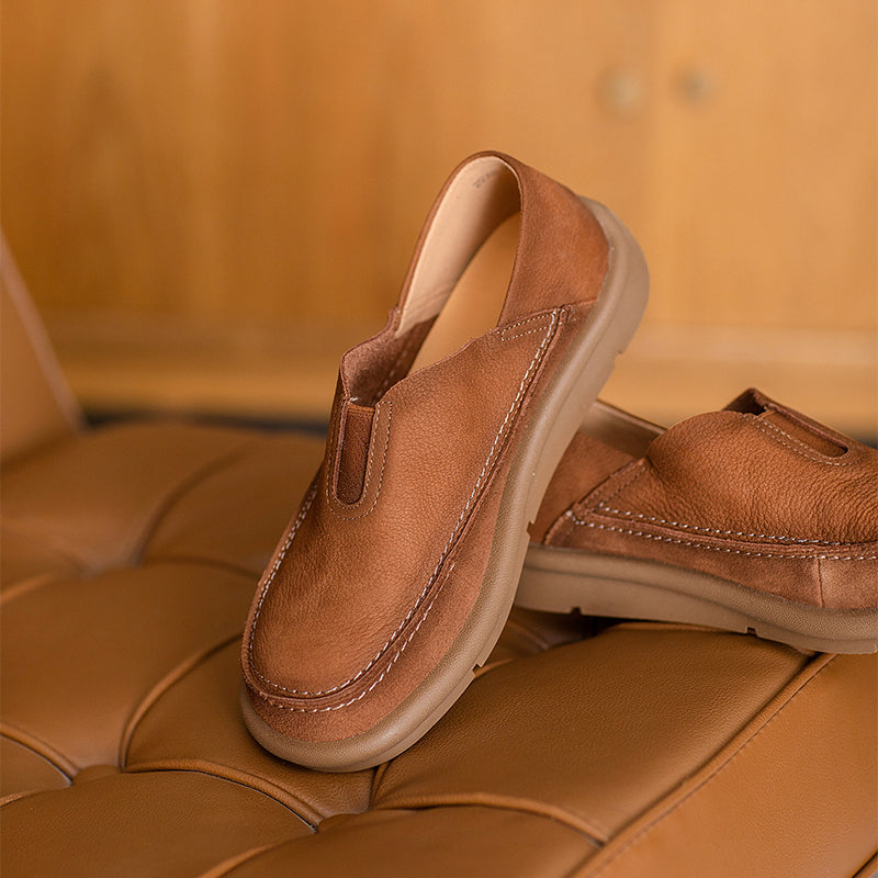 These Vintage Barefoot Leather Loafers feature a round toe and a naturally flexible design that lets your feet move comfortably and freely. Made from premium top-grain cow leather, the upper is soft, breathable, and shaped for daily comfort. The slip-on construction includes an elastic band on the instep for an easy, secure fit. A lightweight, durable rubber outsole offers excellent grip, making these flats ideal for everyday wear, commuting, or relaxed weekend outfits. Blending casual style with a touch of retro charm, these loafers are perfect for anyone who prefers comfort, simplicity, and minimalist barefoot flexibility.