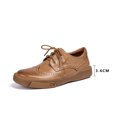 Fine Pore Texture, Soft And Comfortable Waxing Sheepskin Upper. Insole And Lining Are All Made Of Top Layer Leather, Soft, Flexible And Comfortable, Hand-Cut, Lace Up Brogue, Wearing Your Unique Beauty, Soft Rubber Bottom Let You Not Tired After Walking For A Long Time.