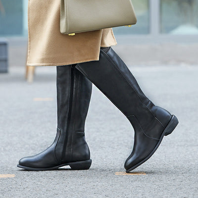 We offer an extensive collection of women's boots, including knee-high boots, sheepskin boots, combat boots, and many more. These wide varieties of boots suit every occasion, taste, and season. Being the top-trusted platform for handmade leather boots, we assure our customers of comfort and flexibility. Our handmade women's boots are crafted with high-quality material and available at affordable price tags.At Dwarves, you will get Crazy Horse Leather Knee High Boots made from real leather with a rubber sole in three colours: Black, Brown, and Coffee.