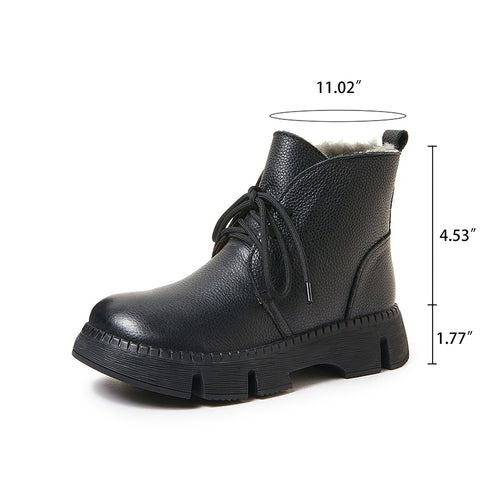 Handmade Retro Leather Lace Up Ankle Boots For Women With Fleece Lined in Black/Coffee