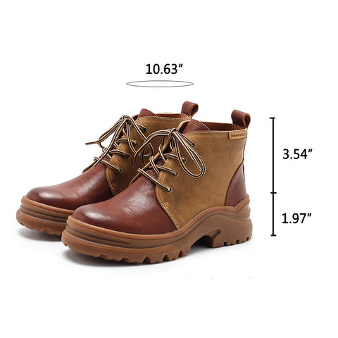 Dwarves Designer Handmade Leather Combat Boots Retro Chunky Short Boots Color Blocking