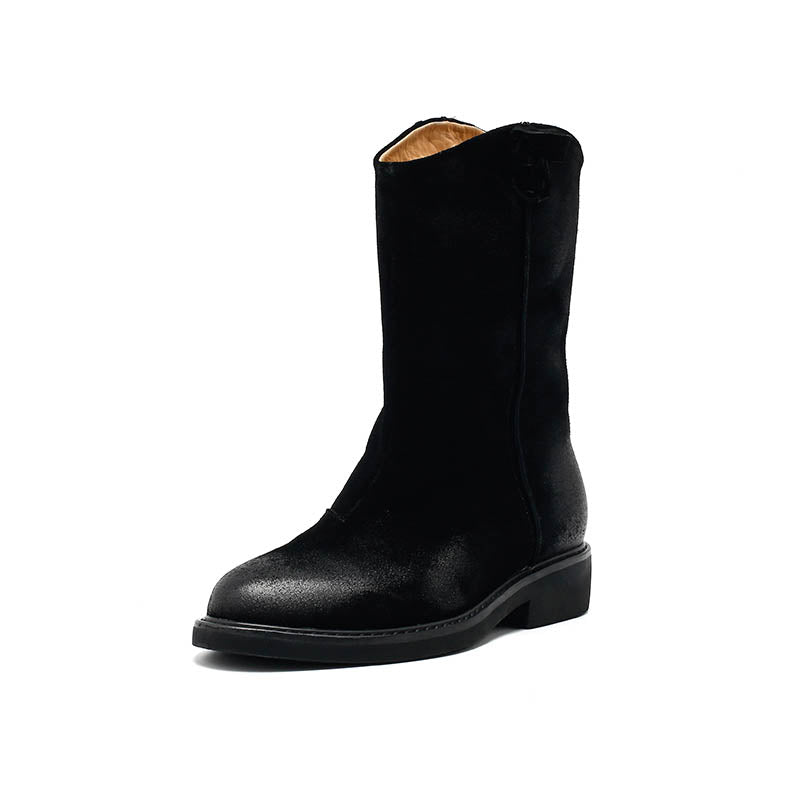 Step into effortless Western charm with these Dwarves mid-calf cowboy boots, handcrafted from premium cow suede leather. Designed with a classic Western R toe and sturdy block heel, they deliver both style and comfort. The soft plush or genuine cow leather lining keeps your feet warm and cozy in cooler weather. Featuring a durable rubber outsole that’s high-elastic, soft, non-slip, and wear-resistant, each pair is carefully crafted by experienced shoemakers to last for years. Perfect for adding a rustic, vintage touch to your everyday look.