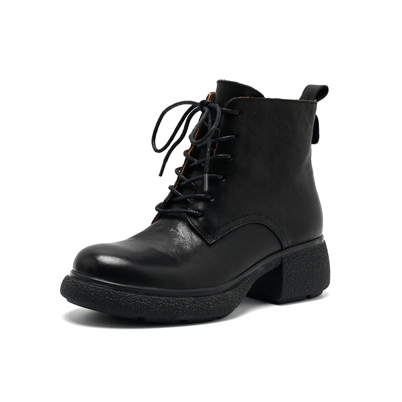 Handcrafted from premium full-grain vegetable tanned cowhide leather, these Dwarves lace-up Martin boots combine vintage charm with everyday comfort. Designed with a 50mm chunky block heel and side zip for easy wear, they offer both height and stability. The high-elastic rubber sole is soft, non-slip, and wear-resistant, ensuring long-lasting durability. Lined with short plush or cow leather for warmth and comfort, these short boots deliver a timeless, handcrafted look that’s perfect for casual or urban wear.