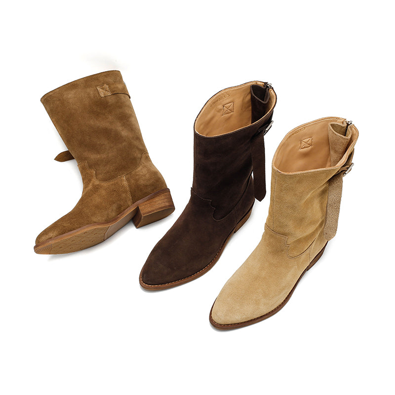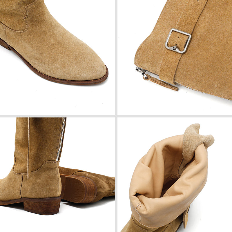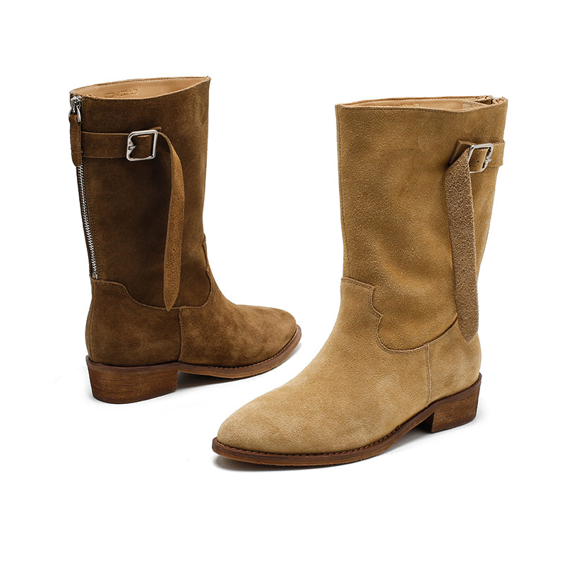 These Dwarves mid-calf cowboy boots are crafted from soft cow suede leather, blending Western flair with modern elegance. Designed with a chic buckle strap and convenient back zipper, they feature a short plush or genuine cow leather lining for warmth and comfort. The Rubber Sole Is High Elastic, Soft, Non Slip And Wear-Resistant. Each Shoes Fixed by Experienced Craftsman. It can be worn for years. Perfect for effortless everyday styling.