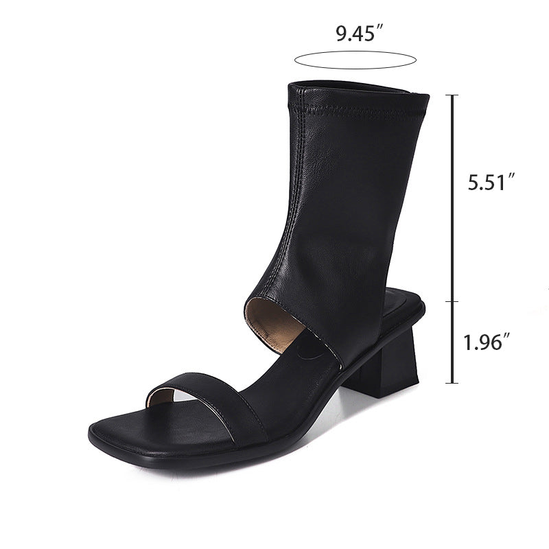 Gladiator Sandals Boots Cow Leather Block Heel in Black/Brown