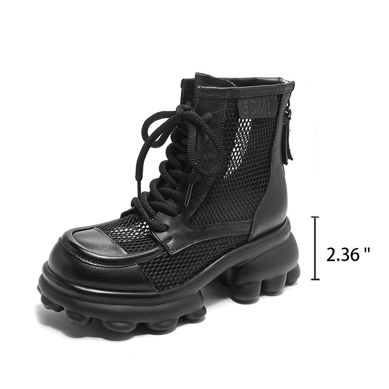 60mm Platform Boots, Leather and Mesh Splicing, Breathable for Summer