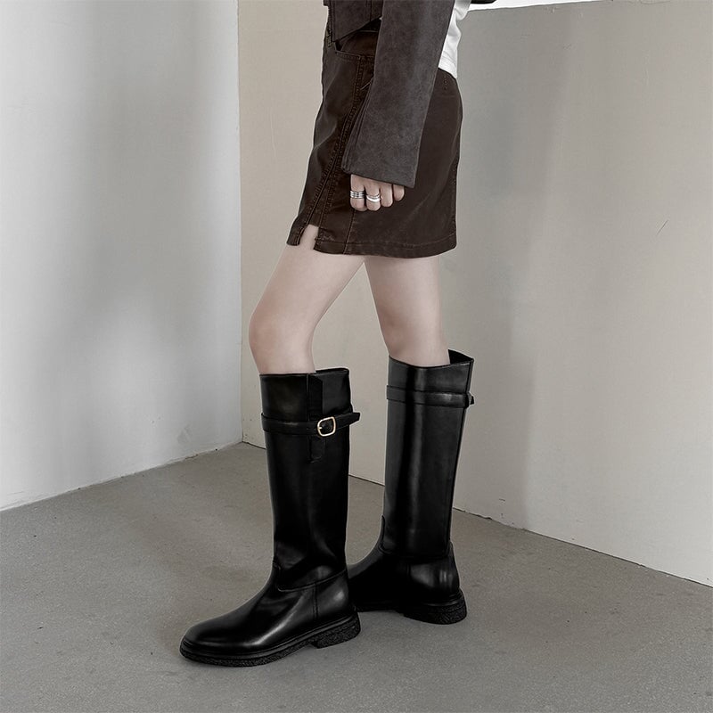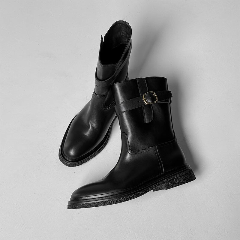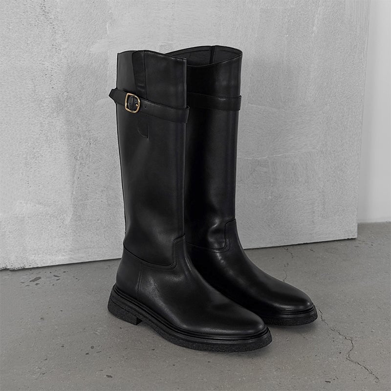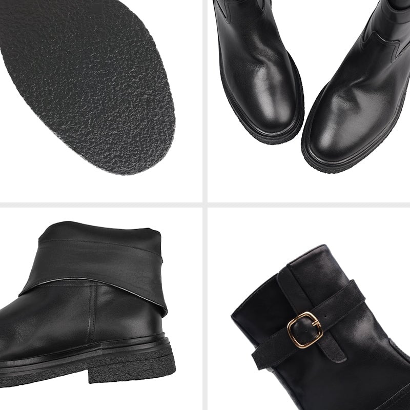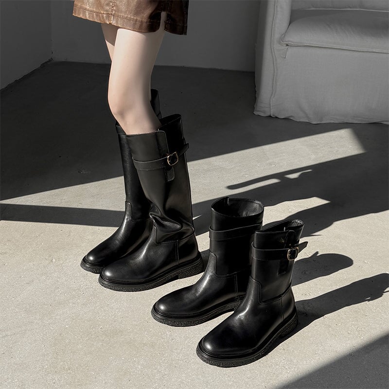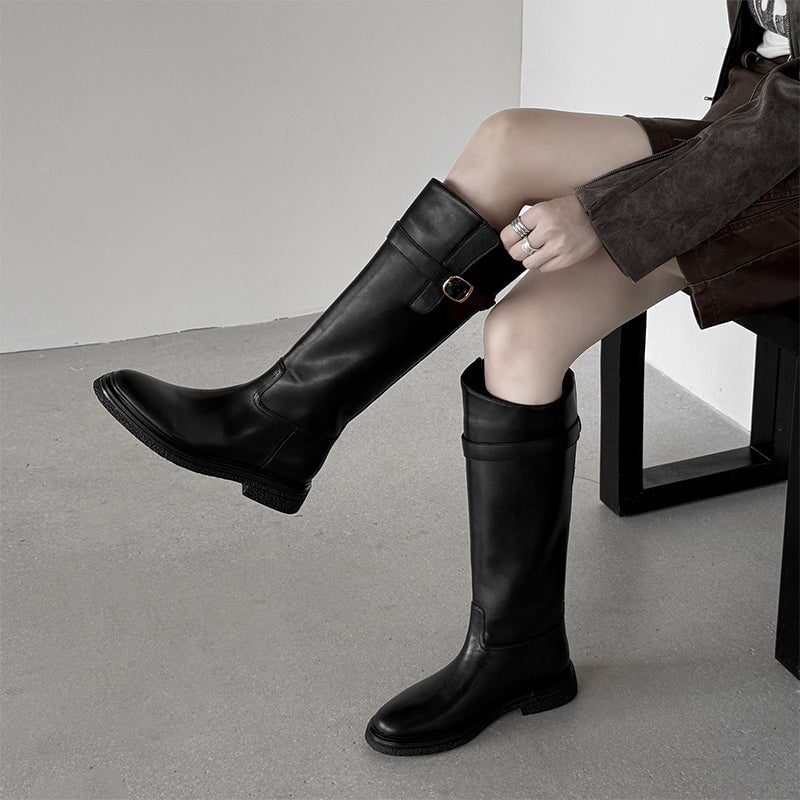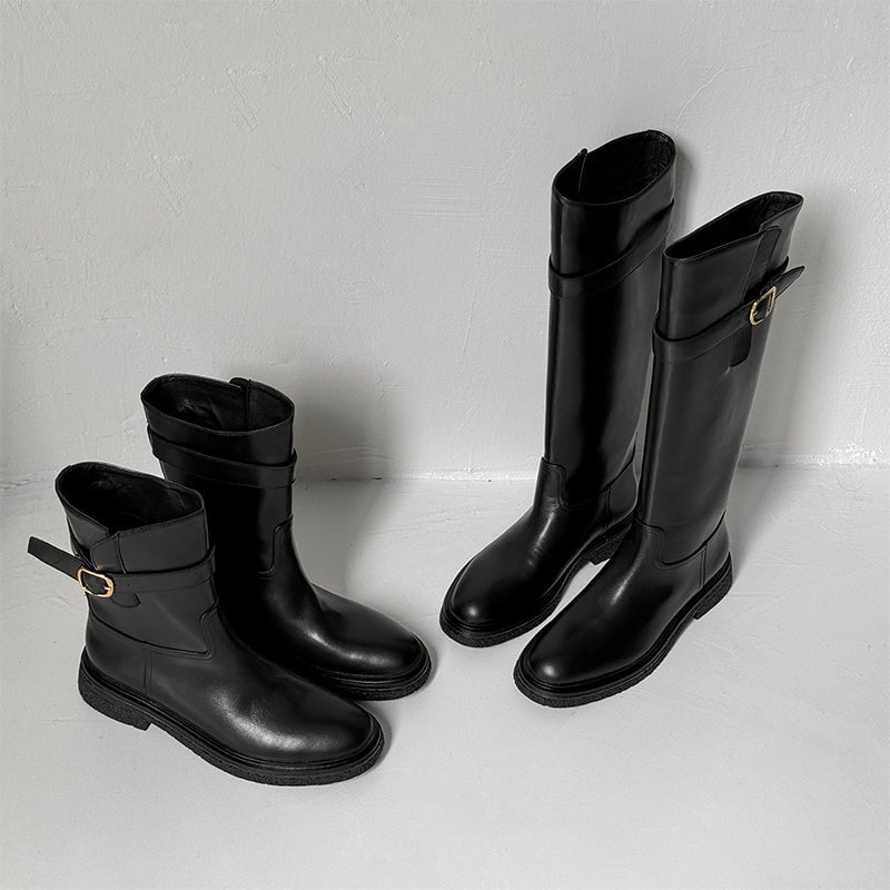 Handmade Retro Riding Boots for Women Leather Knee High & Short Boots with Buckle Design in Black