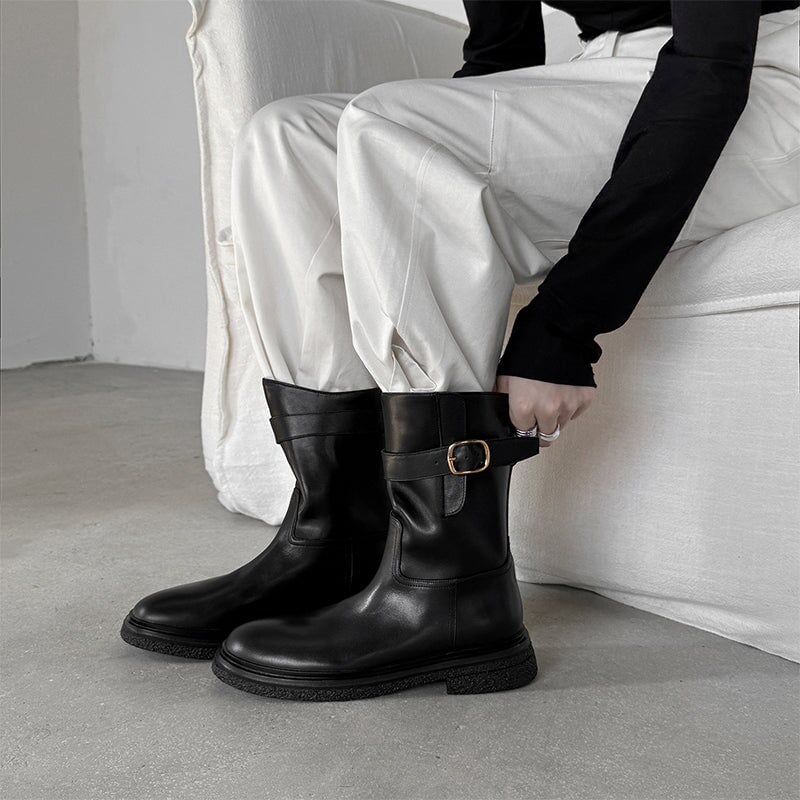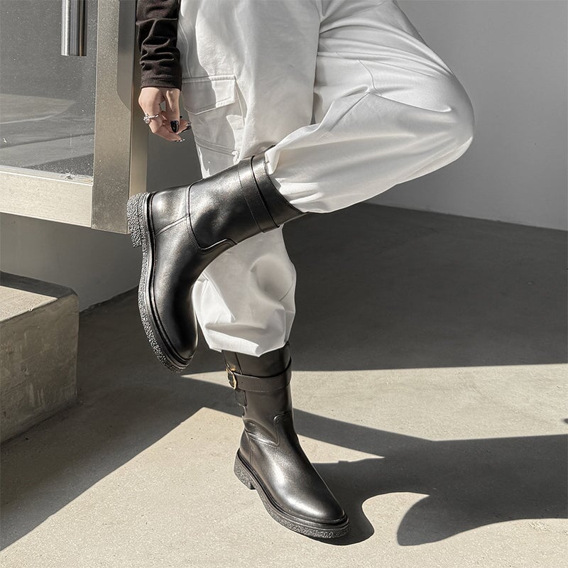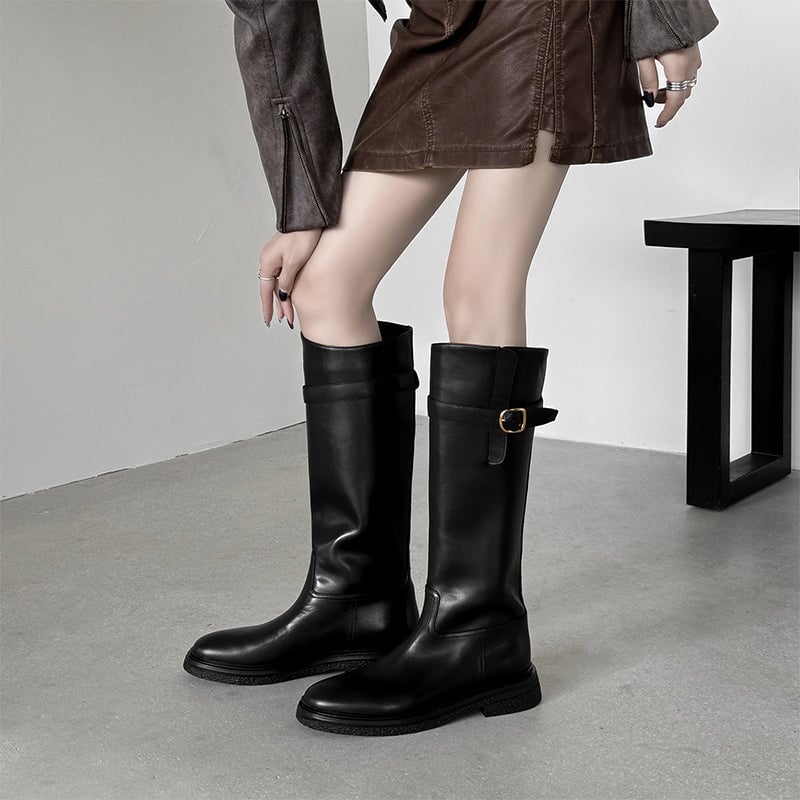 Step up your everyday style with these handmade retro riding boots, available in both knee-high and short versions. Crafted from premium Italian washed first-layer cowhide, they offer a soft yet durable texture with a timeless, vintage appeal. Designed with a round toe, chic buckle strap, and a comfortable block heel, these boots combine fashion and function effortlessly. The high-elastic, non-slip rubber sole ensures excellent grip and long-lasting comfort. Each pair is meticulously crafted by experienced artisans and made to be worn for years.