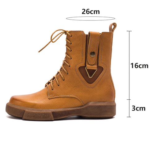 Dwarves Leather Martin Boots Designer Retro Chunky Riding Boots Side Heart Shape Handmade Coffee/Black/Yellow