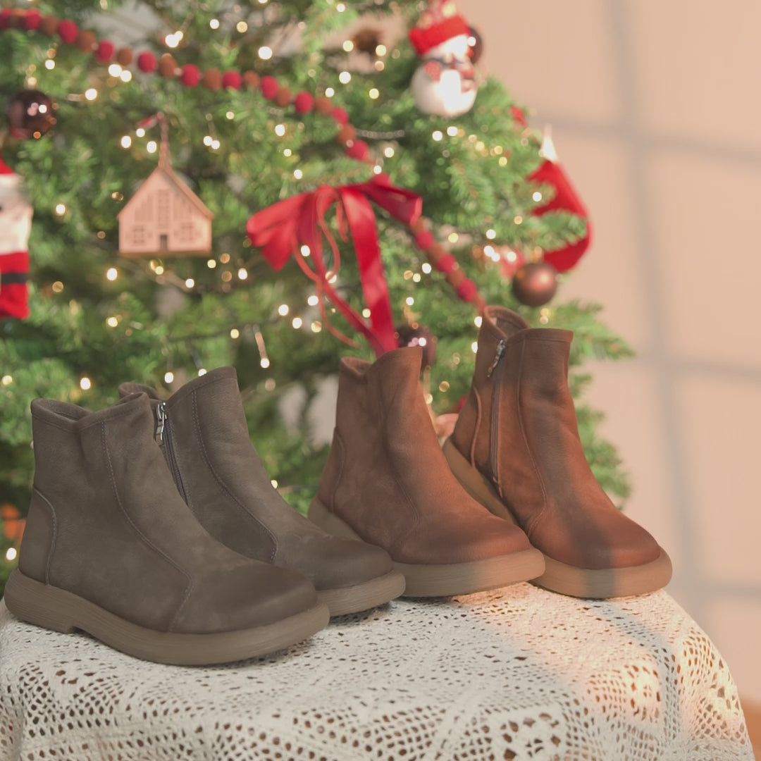 Retro Leather Ankle Boots for Women Flat Shoes Side Zipper in Gray/Coffee/Black