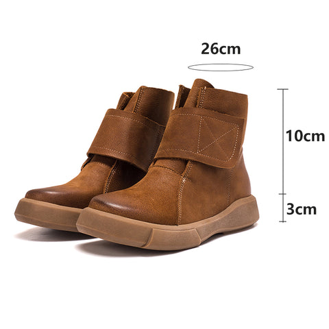 Dwarves Waxing Leather Martin Boots Velcro Ankle Boots Leather and Short Plush For Choice Black/Coffee