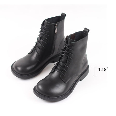 Women Leather Ankle Boots Soft Bottom Flat Round Toe Big-Head Retro Martin Boots Coffee/Black