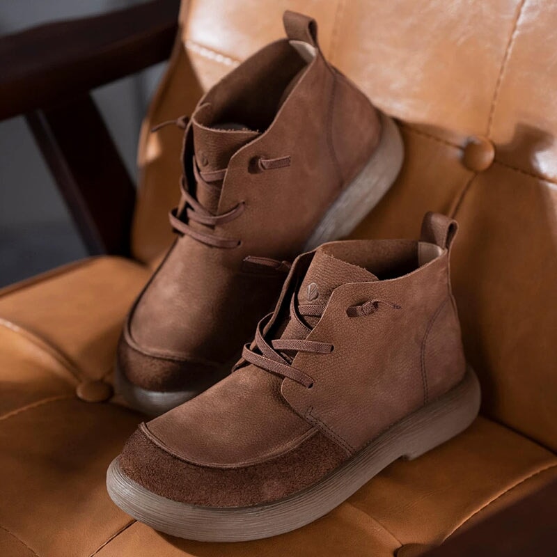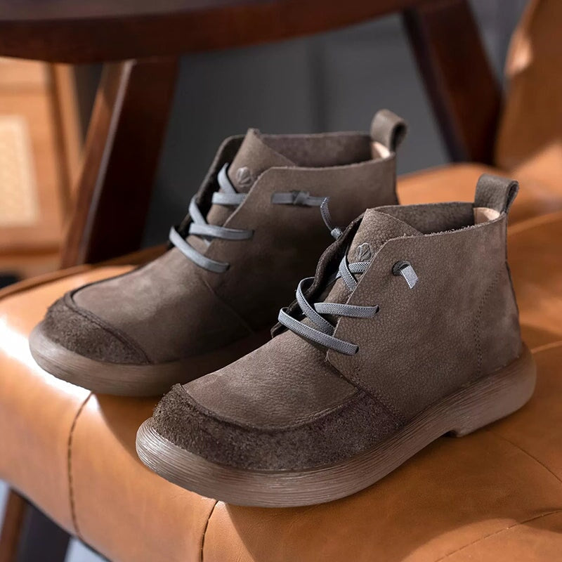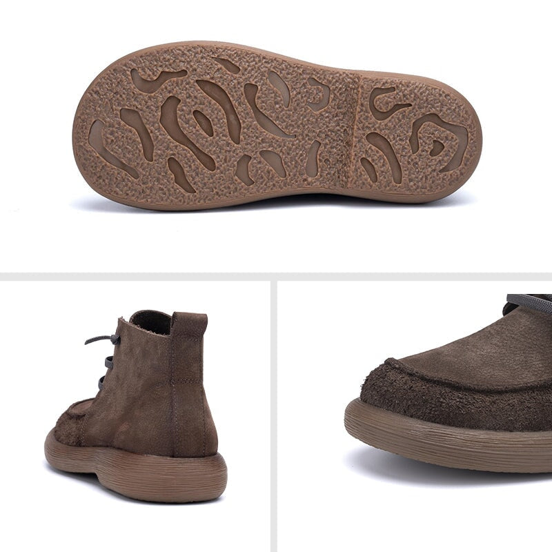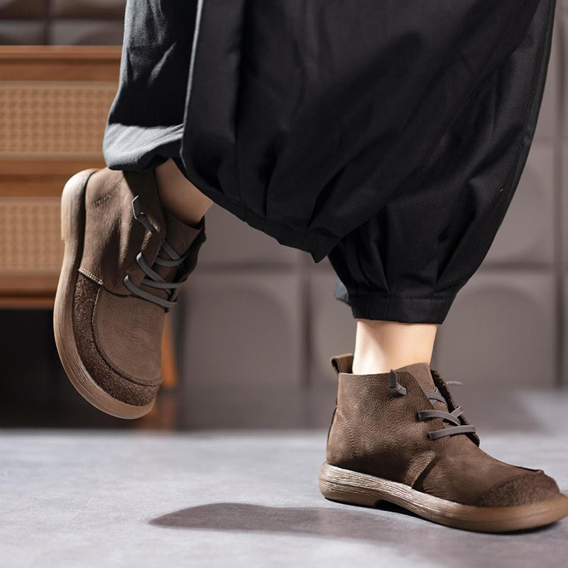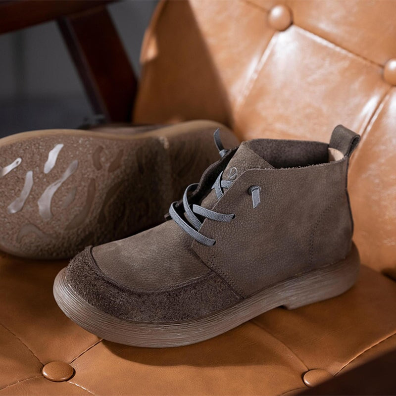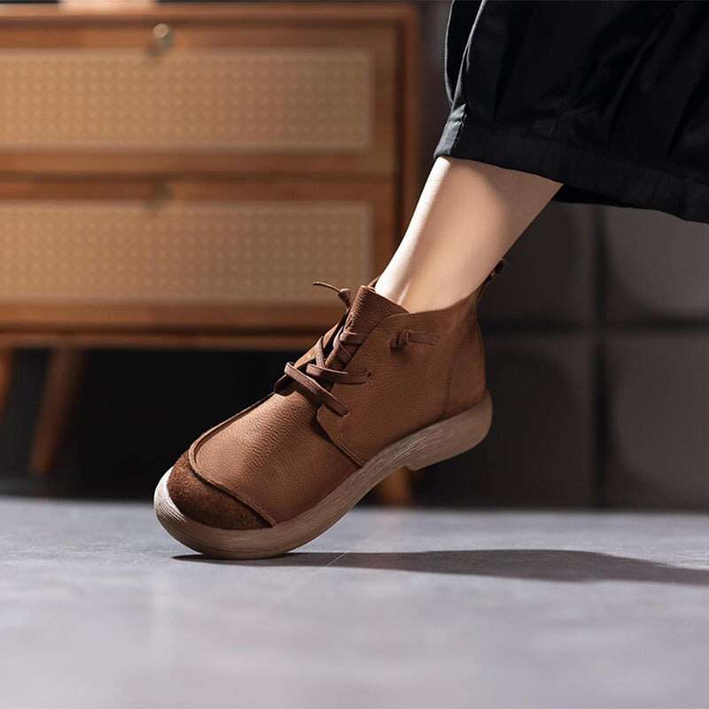 Women’s Mori Girl Style Retro Leather Lace-Up Short Boots Wide Fit in Coffee/Gray/Khaki
