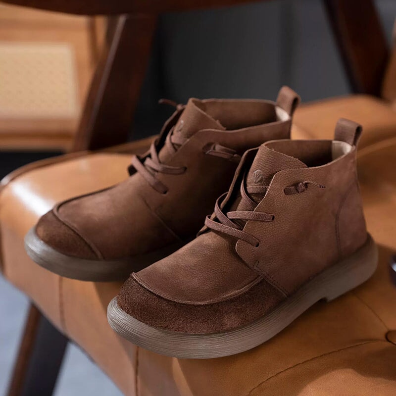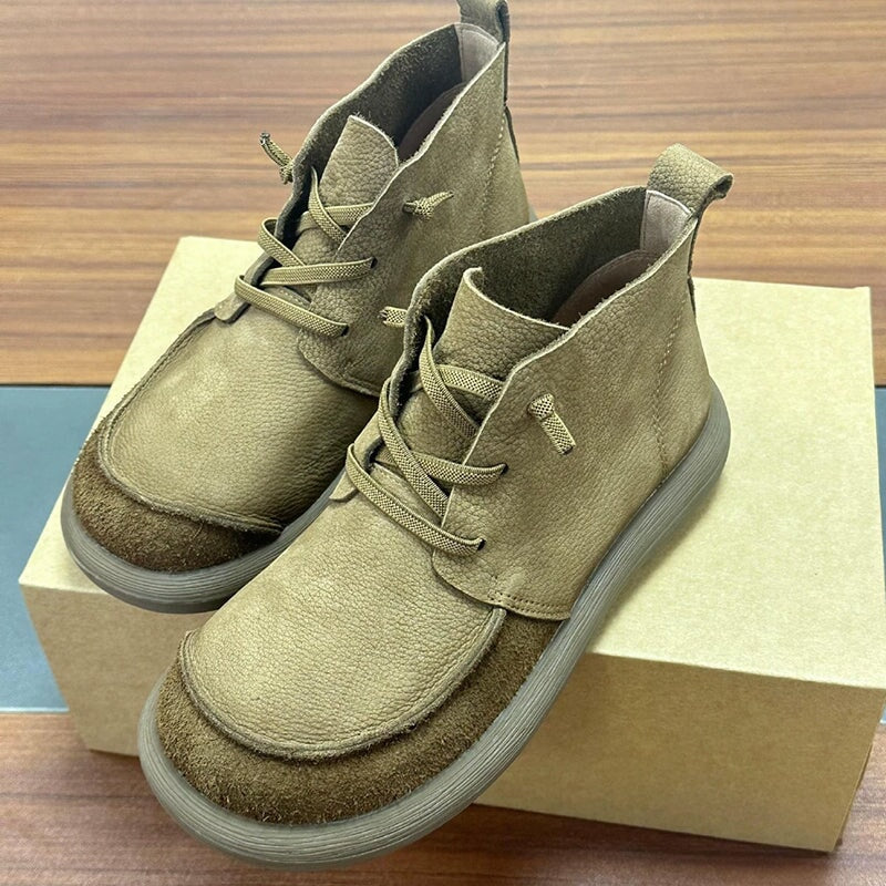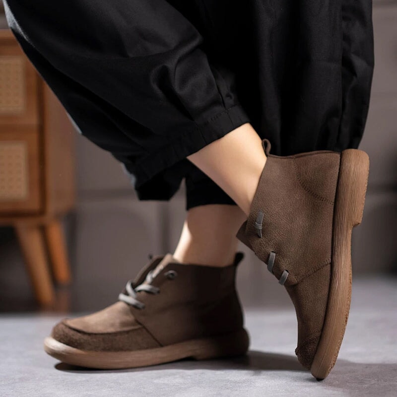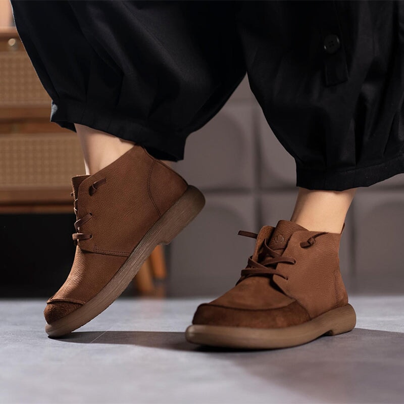 Crafted from premium full-grain cow leather, these Mori Girl style short boots feature a soft and breathable texture for everyday comfort. Designed with a wide fit and round toe, they provide relaxed wear and natural movement. The lace-up front adds a touch of vintage charm, while the durable rubber sole ensures slip resistance and flexibility. Perfect for a laid-back, retro-inspired look, these handmade leather ankle boots combine softness, stability, and timeless simplicity.