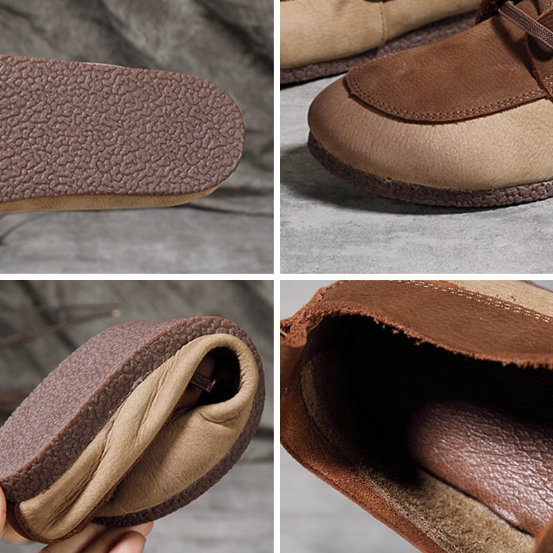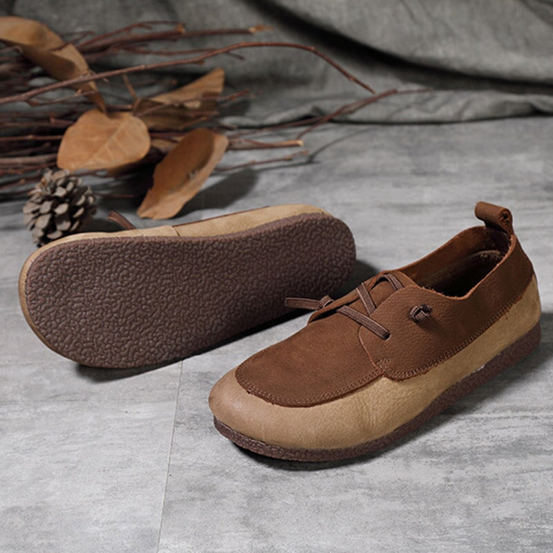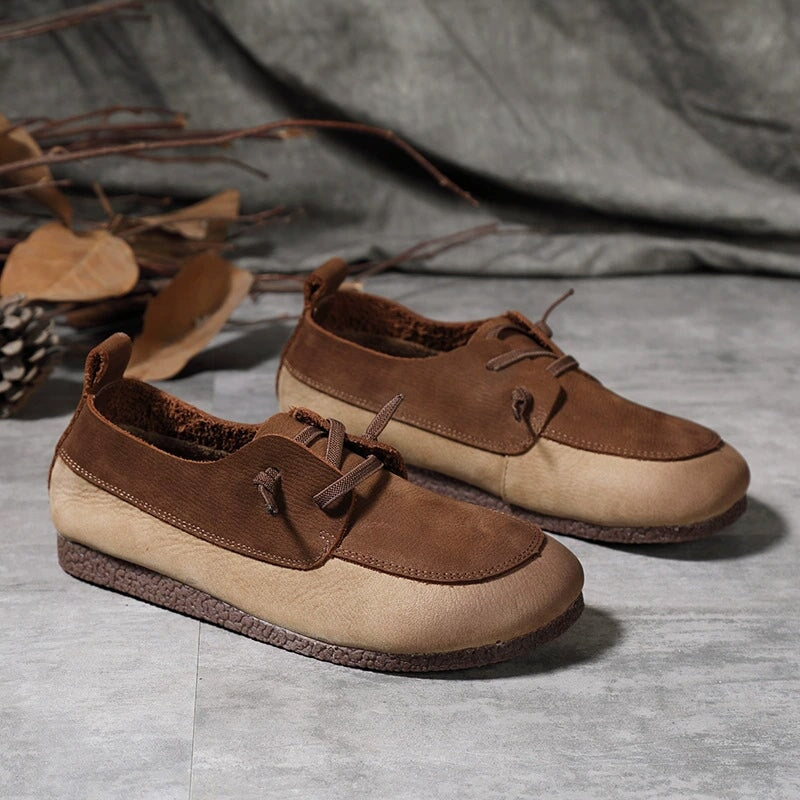 Crafted from top-grain cow leather, these vintage-inspired lace-up oxford shoes feature a soft rubber sole for comfort and flexibility. The two-tone design adds a touch of retro charm, while the round toe and flat silhouette make them perfect for everyday casual wear. Each pair is carefully handmade for lasting comfort and timeless style.