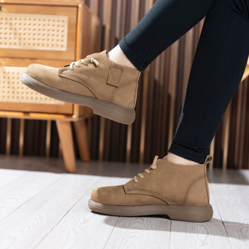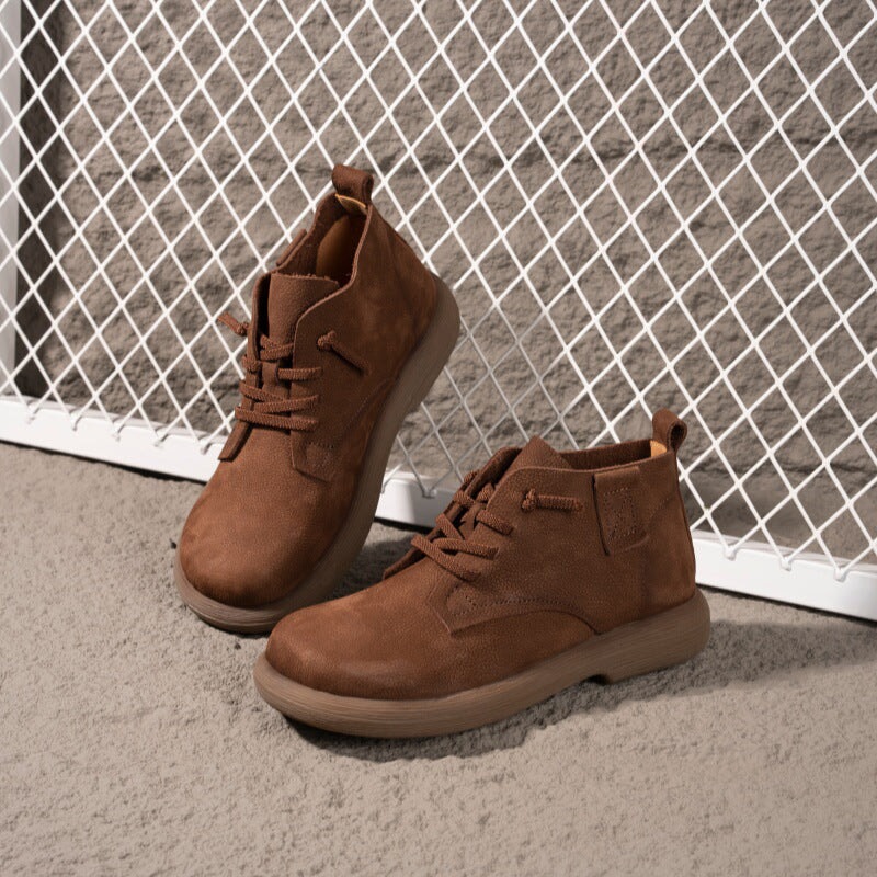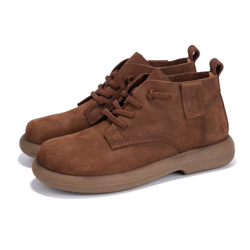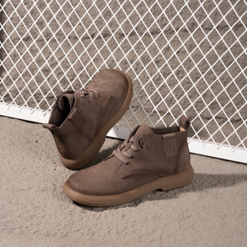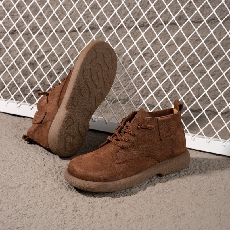Hand-crafted from premium first-layer cowhide leather, these casual boots are soft, breathable, and perfect for daily walking. Designed with a round toe and barefoot-inspired fit, they allow natural foot movement while providing gentle support. The lace-up closure ensures a secure, adjustable fit, and the durable rubber sole delivers excellent flexibility and slip resistance for everyday wear. Ideal for minimalist shoe lovers and anyone seeking soft, flexible, easy-to-match ankle boots.
