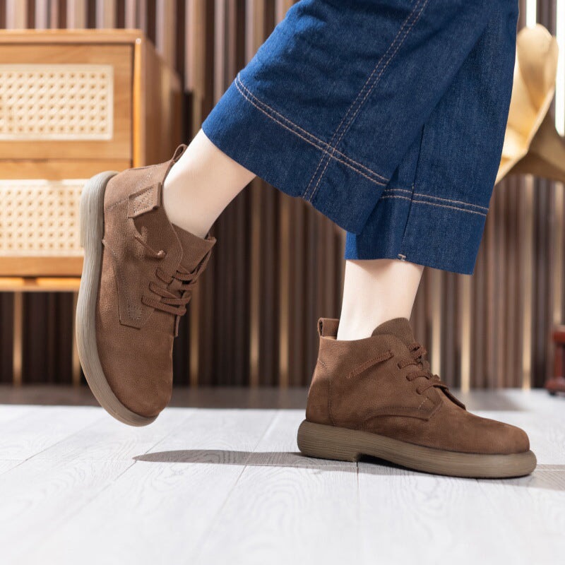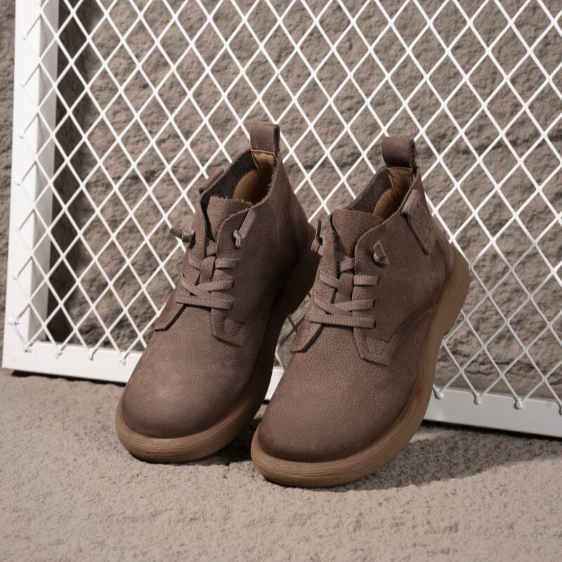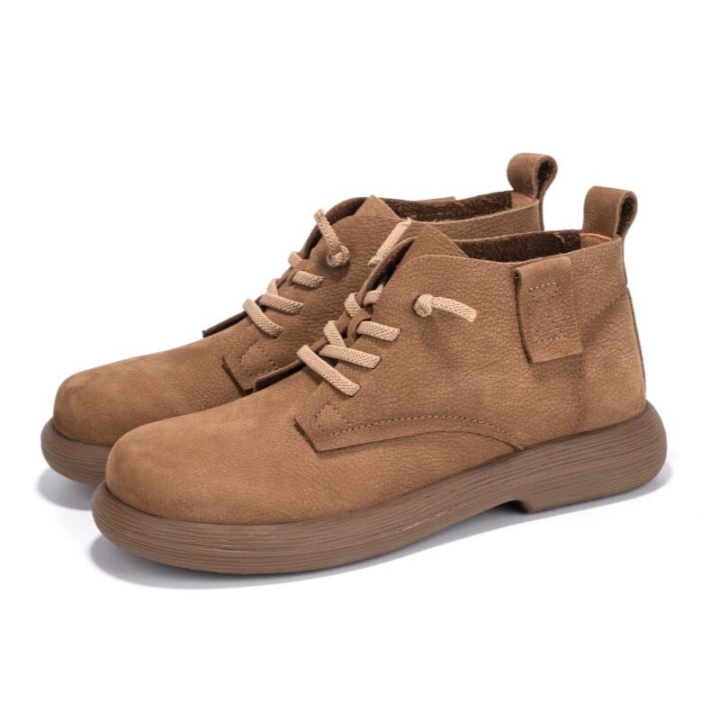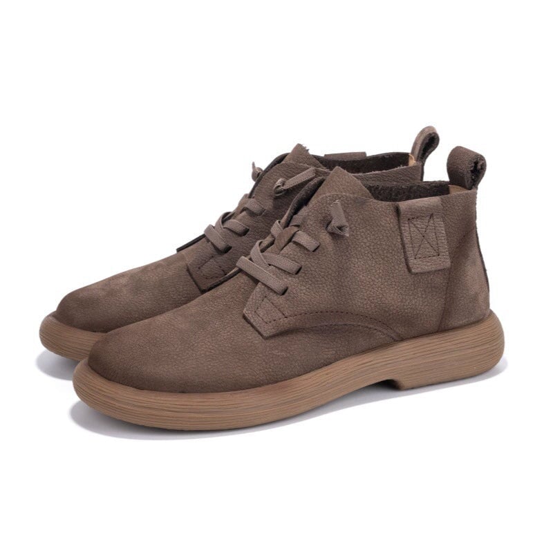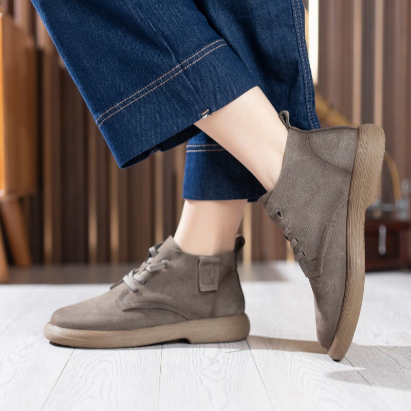 Hand-crafted from premium first-layer cowhide leather, these casual boots are soft, breathable, and perfect for daily walking. Designed with a round toe and barefoot-inspired fit, they allow natural foot movement while providing gentle support. The lace-up closure ensures a secure, adjustable fit, and the durable rubber sole delivers excellent flexibility and slip resistance for everyday wear. Ideal for minimalist shoe lovers and anyone seeking soft, flexible, easy-to-match ankle boots.