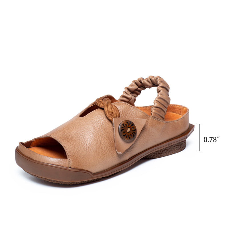 Handmade Flats Soft Leather Peep Toe Slingback Sandals For Women in Black/Khaki