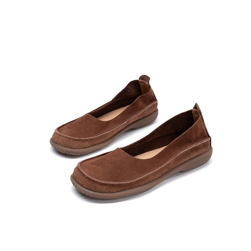 Soft Leather Loafers Breathable Slip On Handmade Barefoot Shoes in Green/Coffee/Khaki