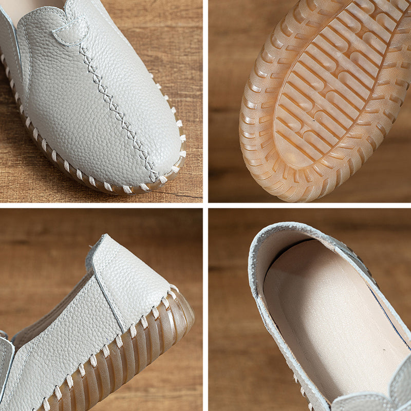 Crafted from premium full-grain cow leather, these handmade slip-on flats feature a soft round-toe design and hand-stitched details for a natural look. The flexible PVC sole is lightweight, non-slip, and wear-resistant, offering lasting comfort and easy everyday wear.