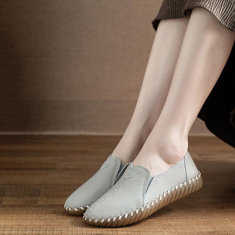 Women’s Handmade Soft Leather Slip-On Flat Loafers Casual Shoes in Light Grey/Coffee/Matcha