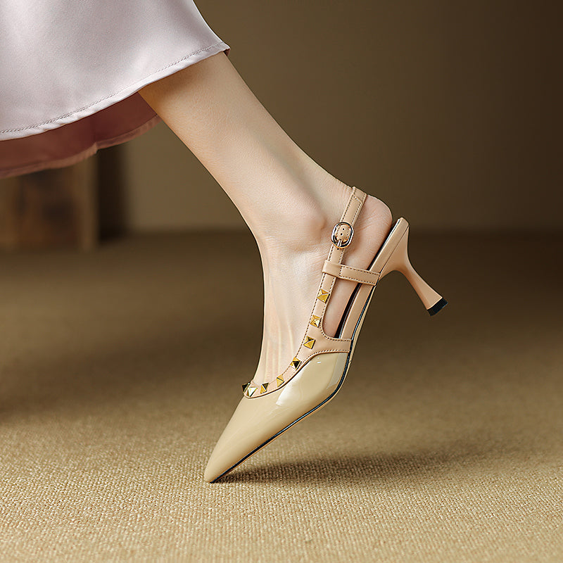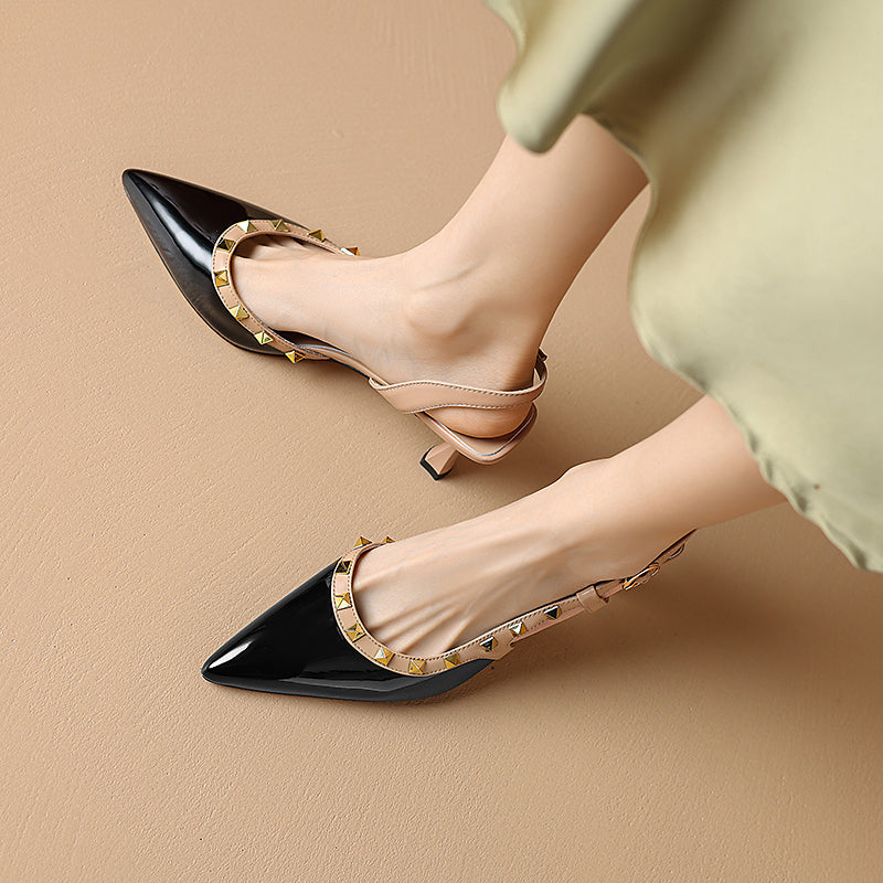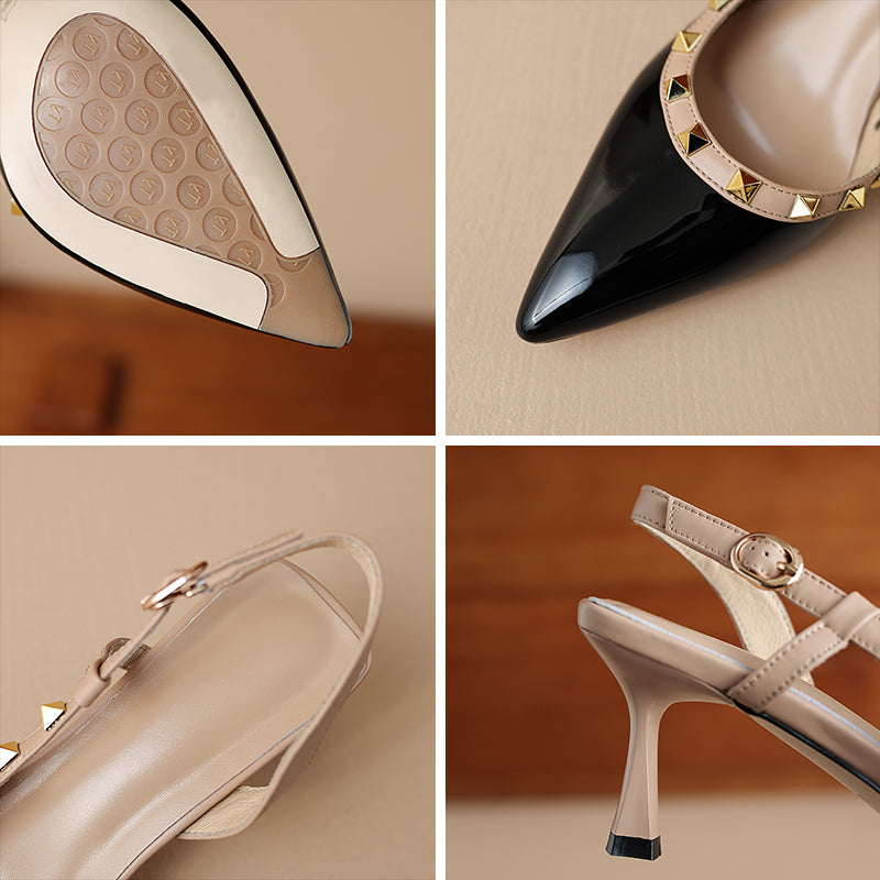 Fashion Patent Leather Slingback Pumps with Stud Details Wedding Sandals in Black/Apricot/White
