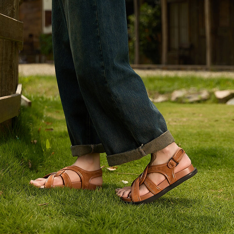 Step into all-day comfort and timeless summer style with these women's genuine leather slingback sandals. Featuring a soft cushioned footbed, open toe, and Roman-inspired cross-strap design, they’re perfect for everyday wear or beachside strolls. The thick rubber sole provides extra support and traction, making them your go-to casual leather sandals for warm-weather adventures.