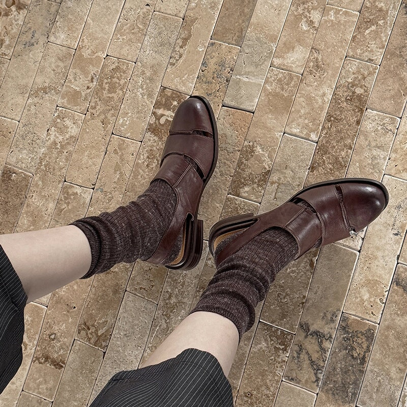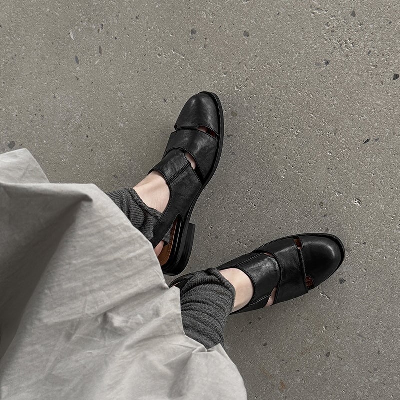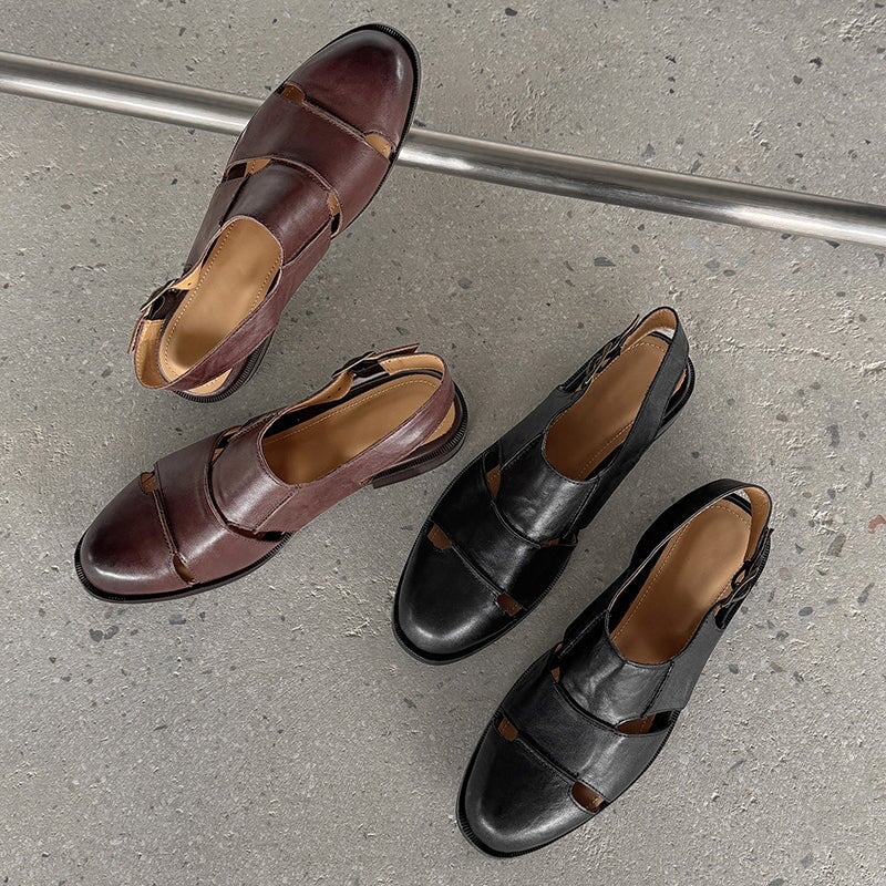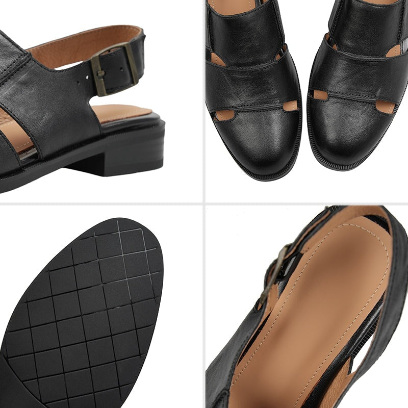 Step into timeless charm with these vintage-inspired slingback sandals. Featuring a classic round toe, secure buckle strap, and unique cut-out Roman design, they are handcrafted from premium first-layer cowhide leather. The soft rubber sole and block heel ensure all-day comfort and durability. Perfect for casual strolls or dressing up with a touch of retro flair.