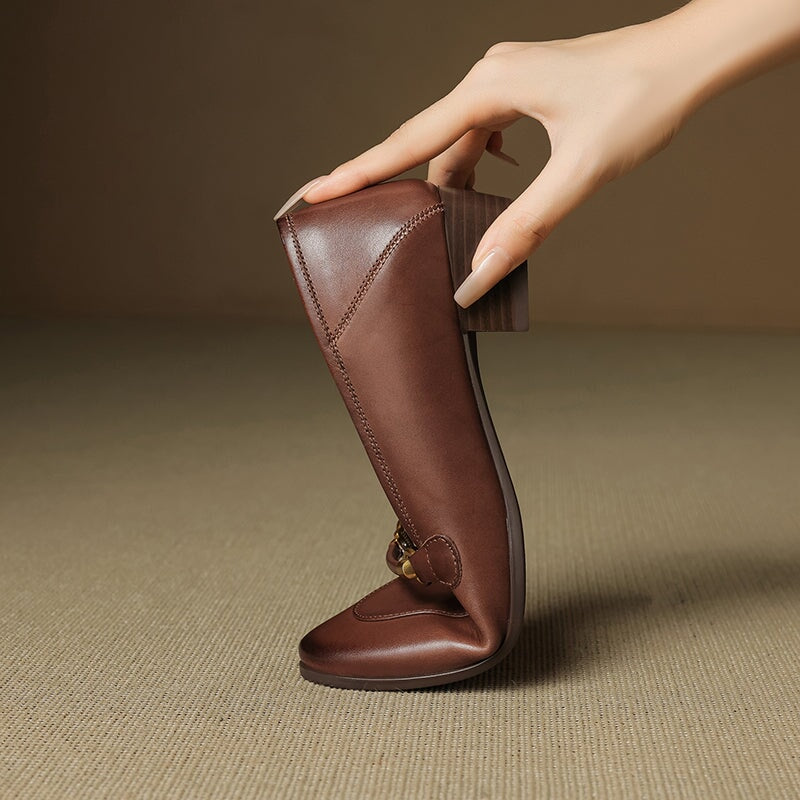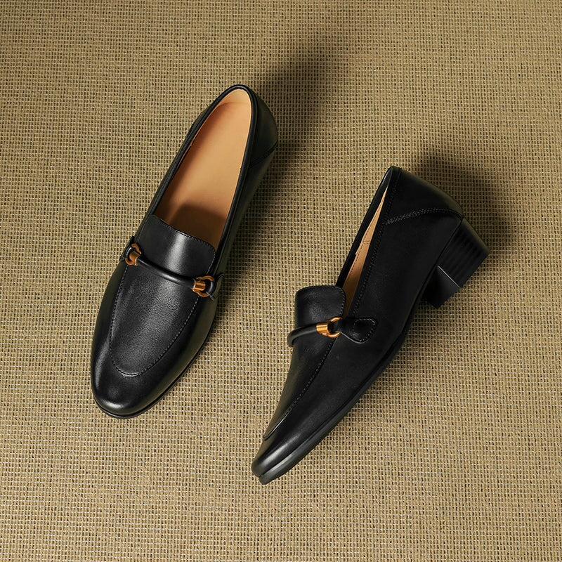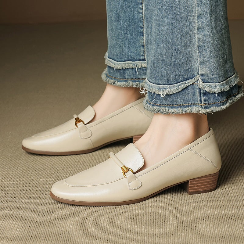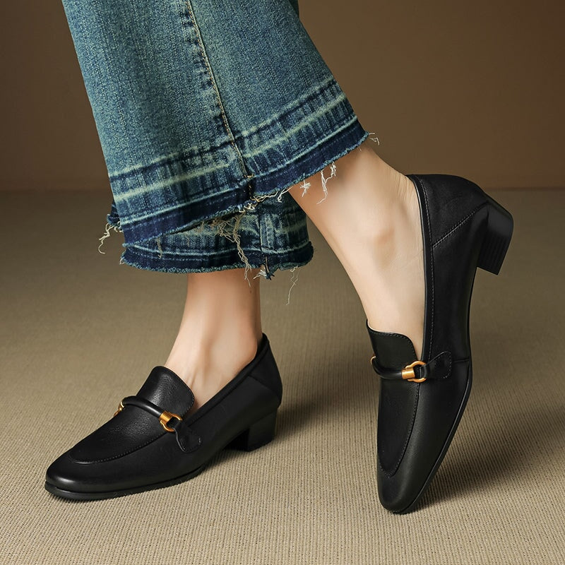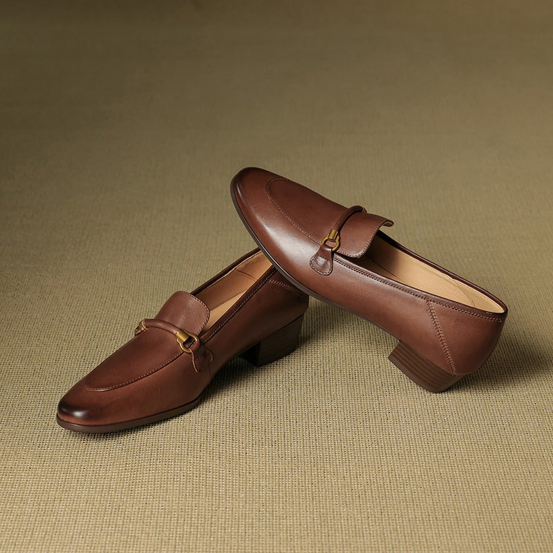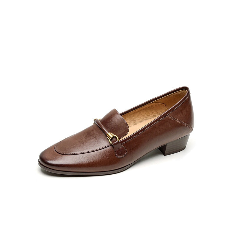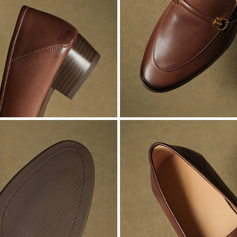 Step into refined British style with these women’s horsebit-detailed loafers, crafted from premium washed top-layer cow leather for a naturally soft and vintage look. The classic round toe and slip-on design offer easy, effortless wear, while the lightweight TPU block heel provides comfort and stability for all-day walking. Perfect for elevating both casual and office outfits, these loafers combine timeless elegance with modern softness and flexibility.