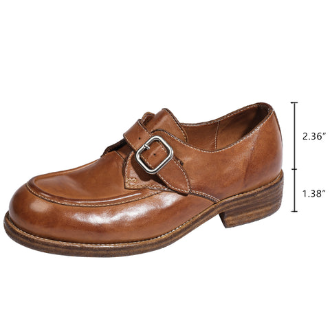 Goodyear Horse Leather Shoes For Women Buckle Loafers Leather Sole in Black/Brown/Coffee