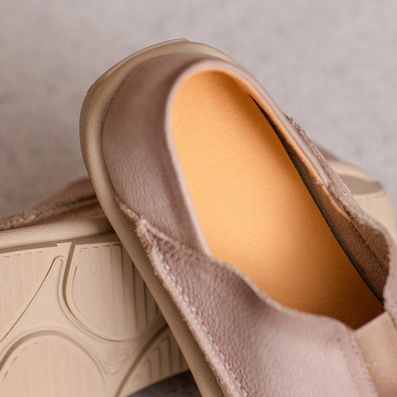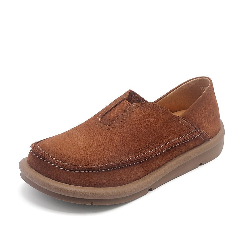 These Vintage Barefoot Leather Loafers feature a round toe and a naturally flexible design that lets your feet move comfortably and freely. Made from premium top-grain cow leather, the upper is soft, breathable, and shaped for daily comfort. The slip-on construction includes an elastic band on the instep for an easy, secure fit. A lightweight, durable rubber outsole offers excellent grip, making these flats ideal for everyday wear, commuting, or relaxed weekend outfits. Blending casual style with a touch of retro charm, these loafers are perfect for anyone who prefers comfort, simplicity, and minimalist barefoot flexibility.