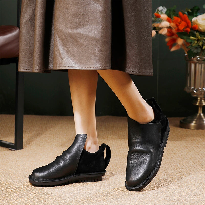 Vintage Handmade Cowhide Loafers Women Casual Slip-On Flat Shoes in Black/Brown